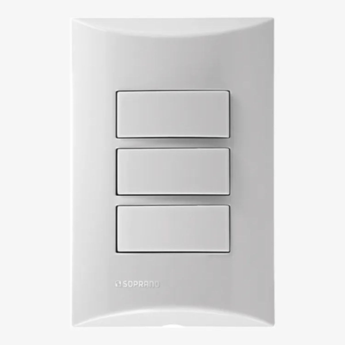 Conjunto Interruptor triplo simples. Design inovador, fácil de instalar e limpar, com superfície em extra brilho e toque suave. Disponível na cor branco. Corrente de 10A e tensão 250V~. Produzido em material termorplástico de alta performance, com aditivo anti UV e anti poeira que auxilia na conservação do produto.